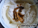 Добавить сметану и просеянную, смешанную с содой муку. Хорошо смешать.