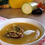 Очень легкий и нежный овощной супчик, кабачки уже скоро заканчиваются, так что тем, кто не пробовал такой вариант, надо поторопиться! :-) На сайте есть похожий рецепт от поваренка ШЕЛЛ, но мой супчик чуть отличается составляющими и подачей.