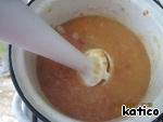Закрыть кастрюлю крышкой и варить на медленном огне 30 мин., затем снять кастрюлю с огня, чуть остудить, хорошо пробить суп блендером (я для удобства часть жидкости временно сливаю), затем вернуть на огонь и довести до кипения.