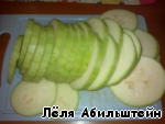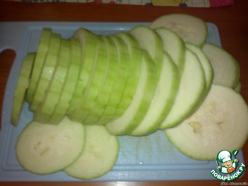 Кабачок почистить и порезать на кружки шириной не более 1 см.