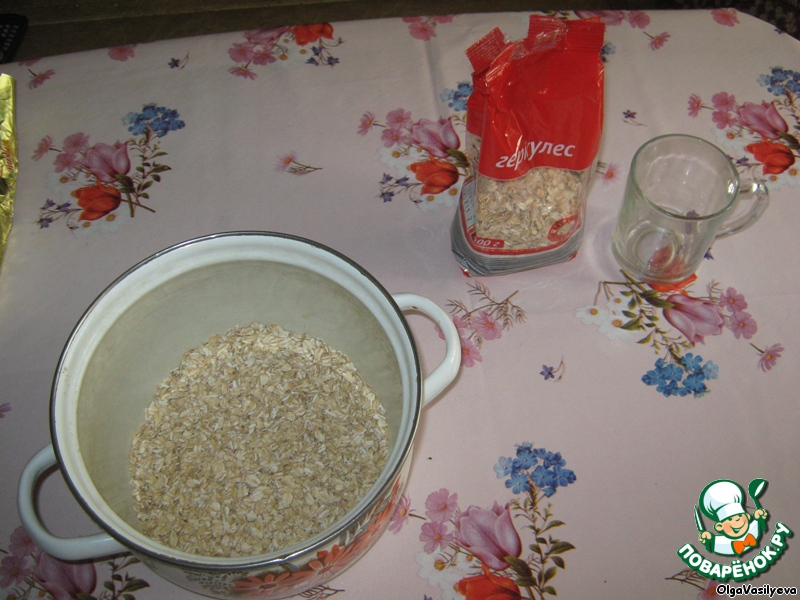 Берем емкость, высыпаем в нее 2 стакана геркулеса или овсянки.