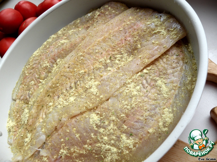 В огнеупорную форму выкладываем рыбку и посыпаем любимыми специями