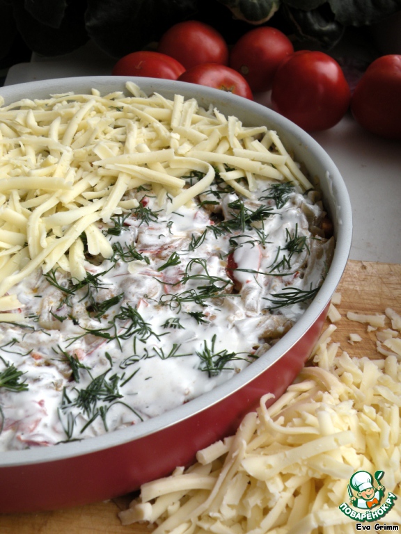 Можно дополнительно присыпать зеленью, после посыпать сыром