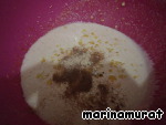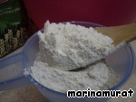 В это время добавляем к тесту муку - 1 стакан. Мука именно серая, неоднородная, в этом вся прелесть и "осенний" вкус пирога. Если у вас нет такой муки, смешайте в равном количестве белую муку высшего сорта и ржаную.