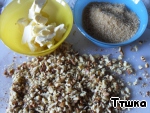 Для приготовления начинки необходимо мягкое масло взбить с орехами и коричневым сахаром.