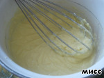 В другой ёмкости смешиваем венчиком желтки, 50 мл молока и кукурузную муку.