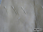 Отступите от противоположного края около 5 см и сделайте по три косых надреза.
