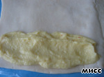 Разрежьте тесто на равные части, я даже использовала линейку. У меня получилось 5 равных прямоугольников размером 12 на 20 см, конечно, это не принципиально. -