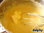Постепенно добавьте сухую смесь в молоко, непрерывно взбивая. Когда крем начнет пузыриться, введите желтки, также непрерывно взбивая. Доведите до кипения и тут же снимите с огня. Добавьте 30 г масла и розовую воду, перемешайте.