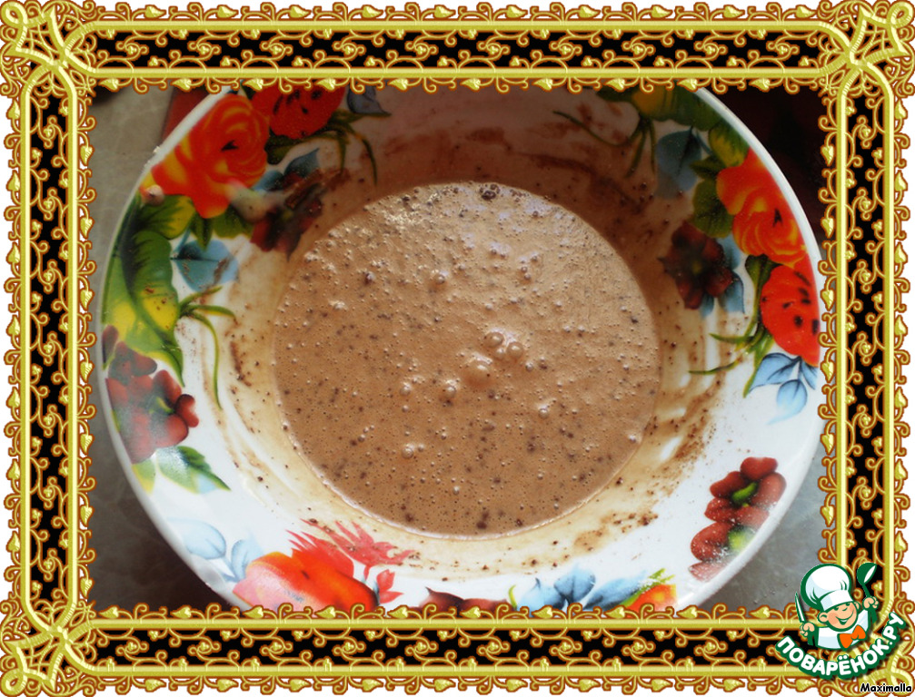 1/3 этой массы отольем в другую посуду и добавим в нее какао.