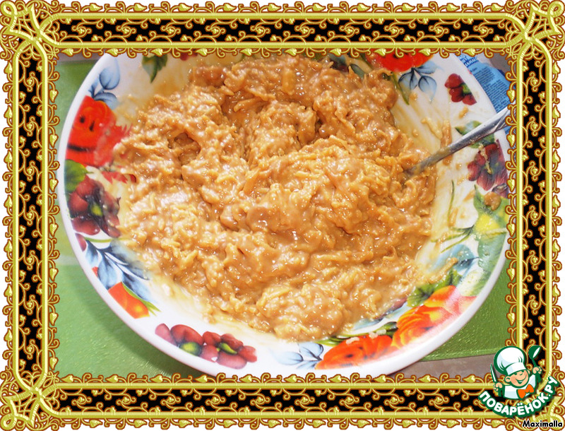 Смешаем с ванилином и сгущенным молоком. Сгущенку я использовала беларусской фирмы, в жестяной баночке, она намного вкуснее, чем в стеклянной. Одну чайную ложку сгущенки следует оставить, ею мы будем «приклеивать» орешки.