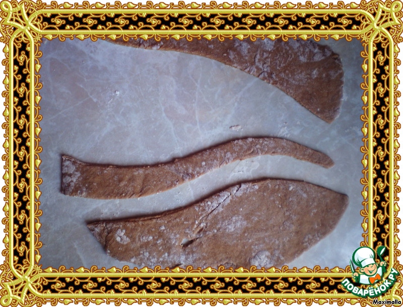 Коричневое тесто нужно тонко раскатать и вырезать ножом или ножницами фигуры для картины. Сначала я вырезала и скрутила в жгутик полоски для рамки.