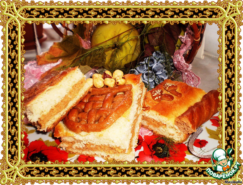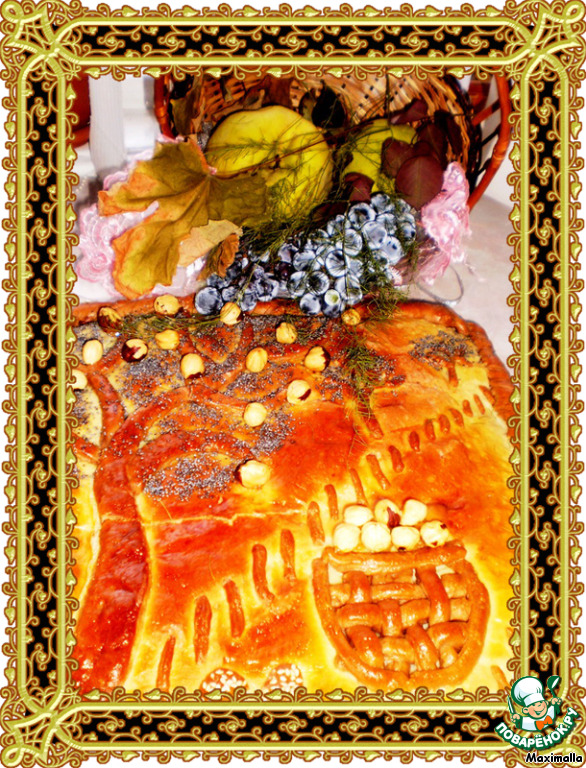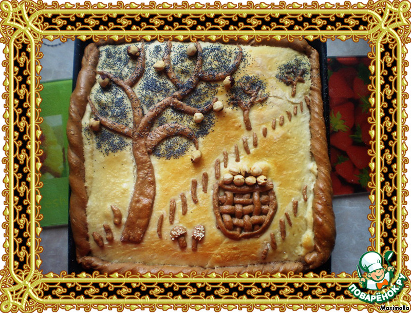 Пирог с лесными орехами, айвой и сгущенкой "Картина осени". Предлагаю вашему вниманию закрытый пирог с лесными орехами и начинкой из айвы и сгущенного молока, выполненный в форме картины с рамкой. Эта картина – символ щедрых и сладких даров осени, богатства, изобилия и достатка... Пусть же этой золотой осенью все эти положительные обстоятельства (и не только эти!) будут в вашем доме!!!