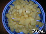 Картофель очищаем от кожуры и нарезаем кубиками, соломкой (кому как нравится)