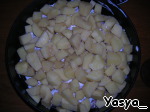 Форму (противень) смазываем небольшим количеством подсолнечного масла и выкладываем лук, затем мясо.