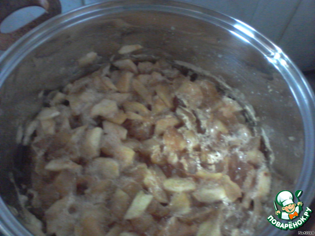 Яблоки помыть, очистить, нарезать кусочками (чем кусочки мельче, тем меньше время варки), поместить в кастрюлю с толстым дном. Я под кастрюлю из нержавейки ставлю рассекатель пламени, а казан ставлю на открытый огонь. Засыпать сахар (я не люблю сладкое и любое варенье делаю с символическим количеством сахара). Если сахара будет много, вкус "детского пюре" исчезнет. На этом этапе можно добавить сок лимона, если яблоки быстро темнеют. Варить на медленном огне до мягкости и еще минут 5-10. Не забывайте помешивать.