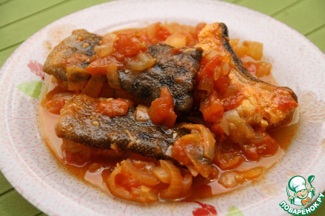 Вот теперь наш густой "суп" нужно посолить, после чего погружаем в него куски рыбы, перемешаем и оставляем под крышкой еще на 10 -15 мин до готовности рыбы.