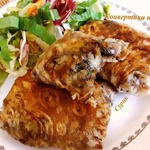 Начинку выложить на порционно нарезанные кусочки лаваша, сделать конвертик и обжарить на растительном масле до золотистого цвета.