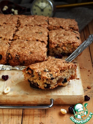 Выпекать при температуре 180 град. 30-40 мин. Дать немного остыть в форме. Аккуратно вынуть и нарезать на квадратики или по своему вкусу.