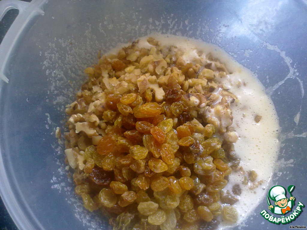 Я снова вернулась к своим старым рецептам без фото и реанимирую их по мере возможностей. Это хрустящий вкусный пирог, полный орехов и изюма. Может, стоит попробовать?