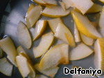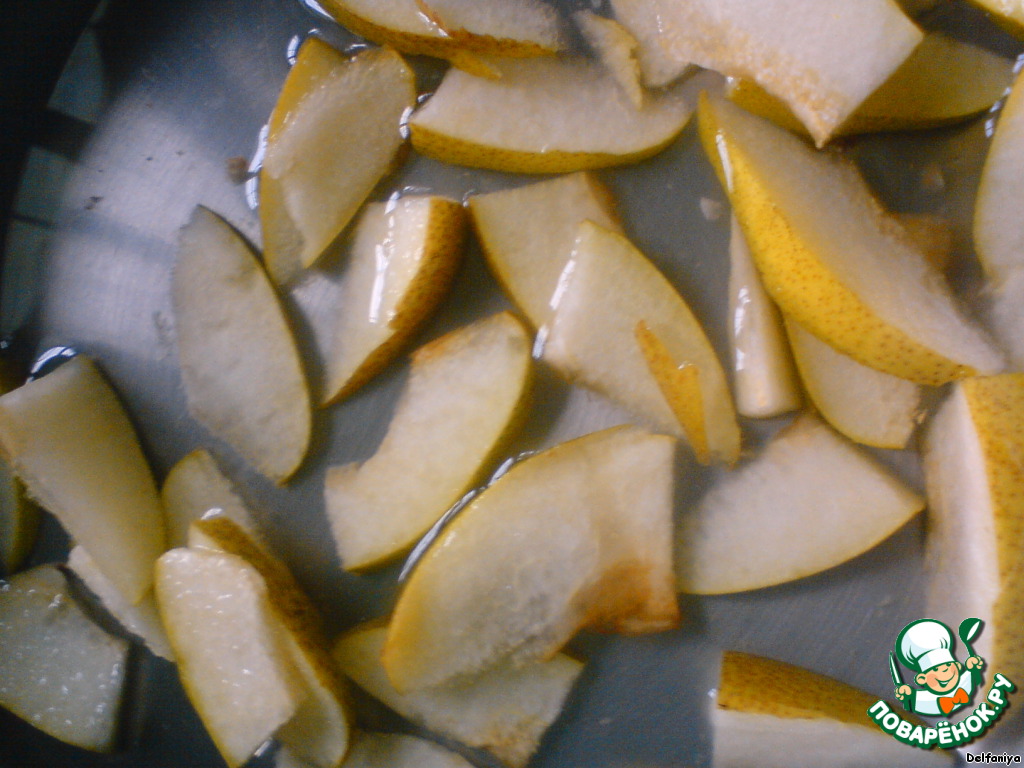Нарежем грушу тонкими дольками и поставим вариться с небольшим количеством воды и 50 г коричневого сахара.