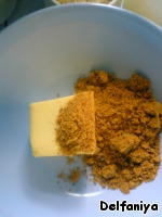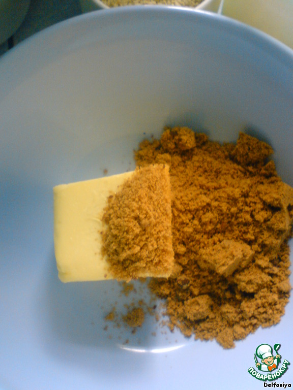 Размешаем мягкое масло со 100 граммами коричневого сахара.
