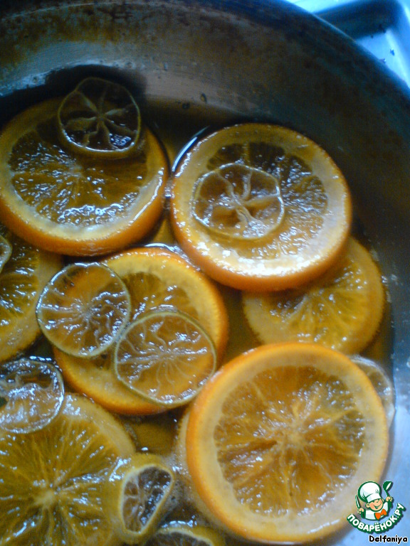 Еще раз остудить, чтобы застыл сироп – он превращается в очень вкусное апельсиново-лаймовое желе, остатки, застывшие в кастрюле, можно доесть :) И выложить на коржики дольки апельсинов и лаймов. Приятного аппетита!