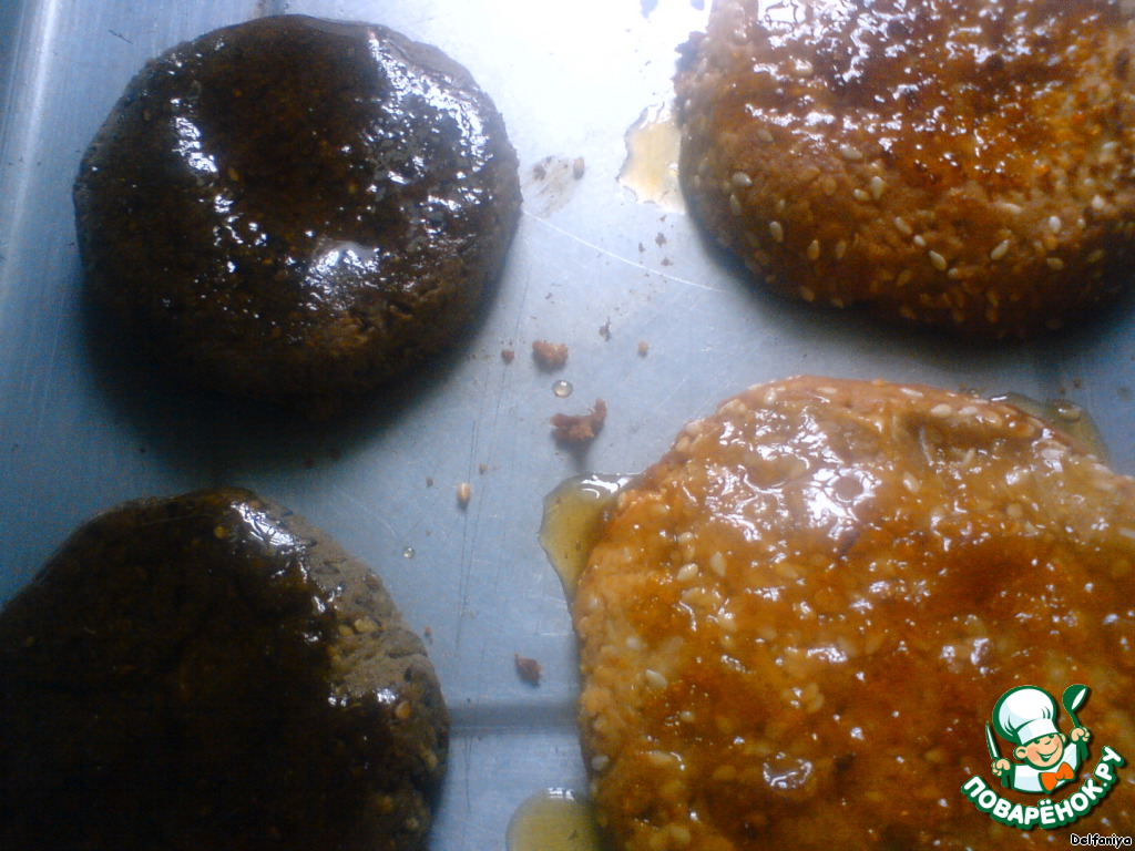 P.S. В тесто с черным кунжутом я забыла добавить соду – они получились поменьше размером и более плотные и хрустящие, а светлые – более воздушные. Хороши и те, и другие, так что можете экспериментировать! Если нет возможности купить черный кунжут – его можно заменить на мак. А белый, например, на кокосовую стружку. Можно также поэкспериментировать с кисломолочной составляющей – кефир, ряженка и т.д.