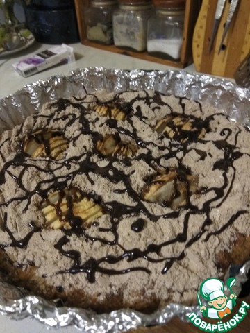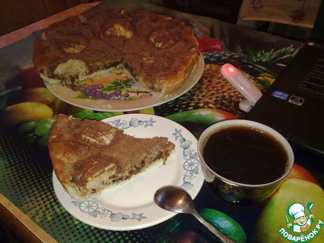Готовый пирог посыпаем по желанию сахарной пудрой, измельченными орехами или тертым шоколадом, по вашему вкусу.