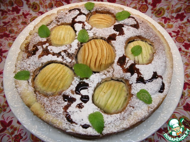 Кладем на начинку половинки яблок, немного их "утапливаем".