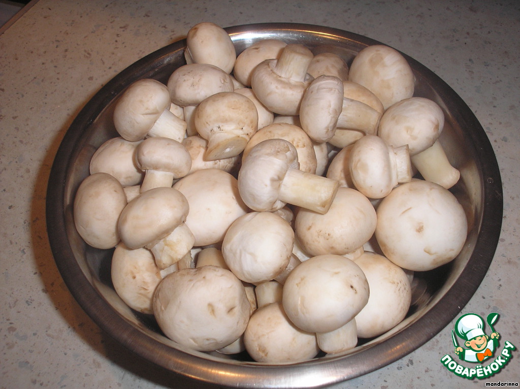 Грибы вымыть, высушить. При необходимости, большие грибы разрезать на 2 или 4 части.