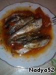 Что-то похожее на "кильку в томате" но... намного вкуснее... А с чeрным хлебушком,... да под рюмашечку... Попробуйте!!!