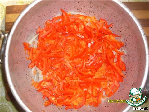 Следующим слоем пошёл перец, нарезанный соломкой,...