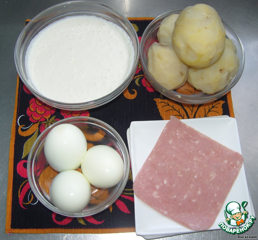 - Колбаса (варенная, кусочек очень тонкий) — 1 ломт.