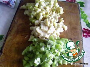 Фрукты нарезать мелкими кубиками.