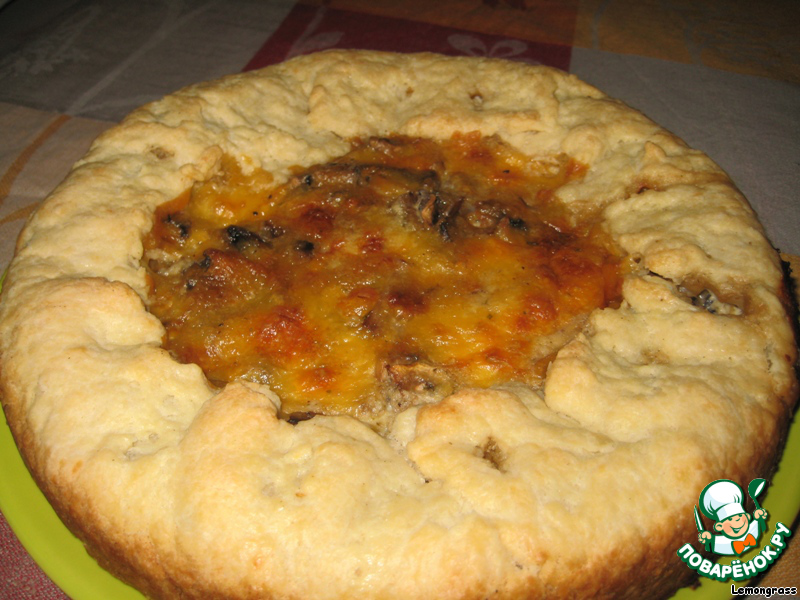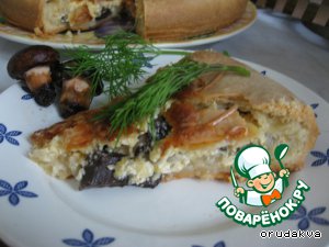 Осень… На огородах дозревает тыква, в садах поспевают яблоки… А в лесу? Что можно осенью принести домой из леса? Конечно, грибы! В выходные муж с сыном после прогулки по лесу принесли много грибов. А сегодня в гости к нам приехали родители, и мне захотелось приготовить им не просто жареные грибы или картошку с ними, а нечто необычное и вкусное. Пирожок свой назвала так не просто. По вкусу он, действительно, напоминает жульен, но в «упаковке» из очень вкусного теста. Честно признаться, тесто и идею я позаимствовала у поварeнка Масяся, рецепт «Пирог-суфле с помидорами» (за что ей огромное спасибо!), но внесла в него некоторые изменения.