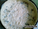 Собираем пирог. Форму (у меня 26см в диаметре) смазываем растительным маслом. Выкладываем тесто и разминаем его пальчиками по форме так, чтобы получились высокие бортики.