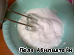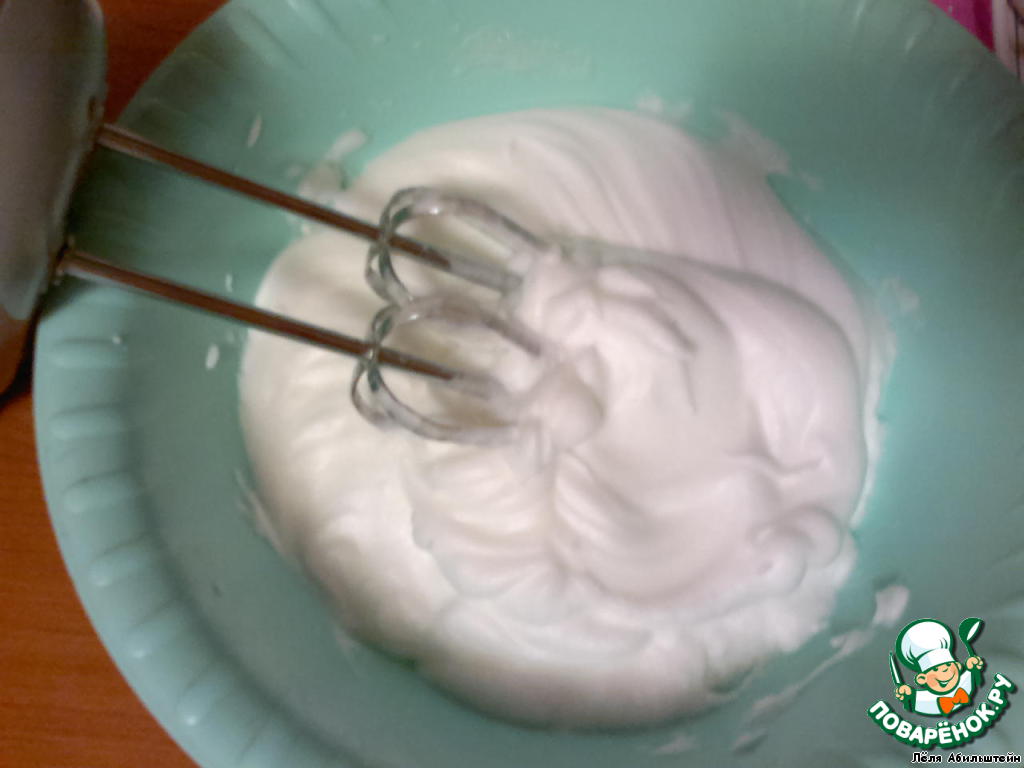 Белки взбиваем со щепоткой соли в крепкую пену.