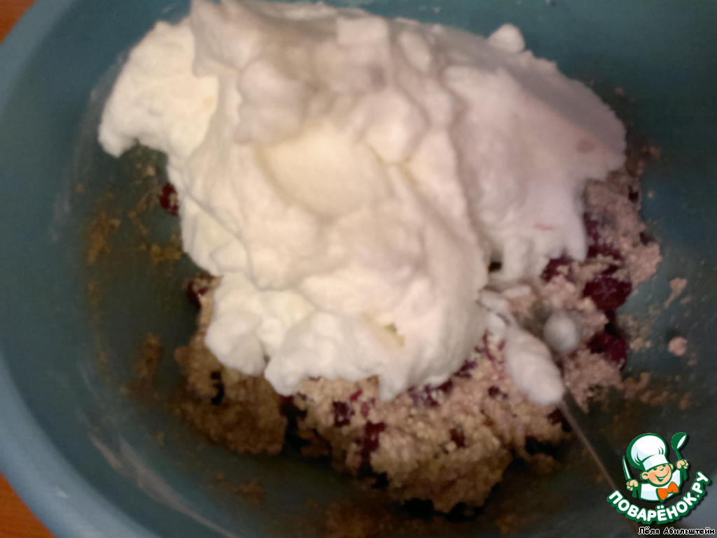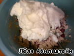 А теперь аккуратно добавляем в начинку взбитые белки и также аккуратно перемешиваем.