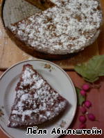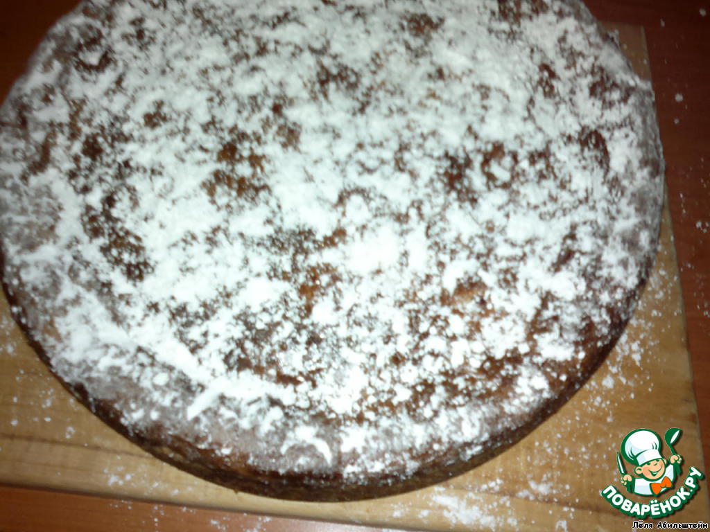 Аккуратно снимаем боковушку формы и посыпаем пирог сахарной пудрой.