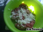 Сыр порезать тонко и мелко или потереть на крупной терке и добавить к фаршу. Посолить, поперчить.