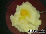 Картофель очистить, отварить до готовности, сделать пюре и дать остыть. Добавить яйцо, крахмал и муку. Замесить тесто.