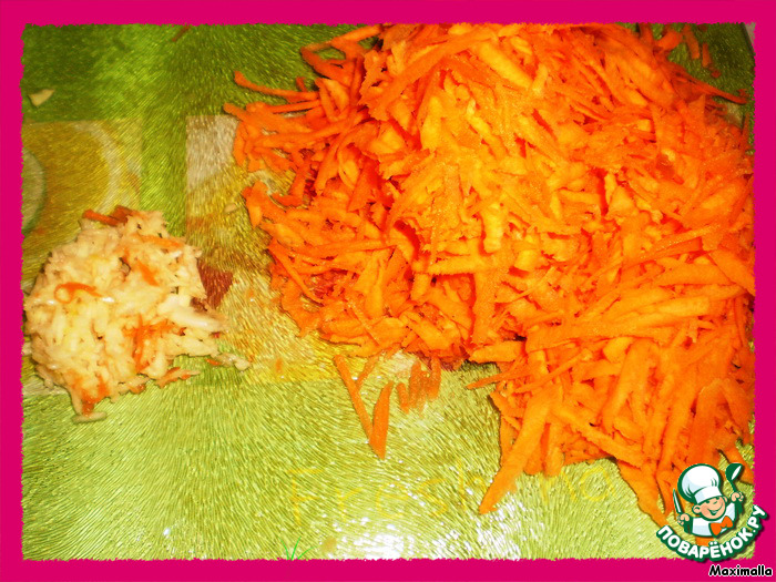 Морковь натереть на крупной, чеснок – на мелкой терке.