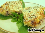Посыпать кунжутом или сухарями.