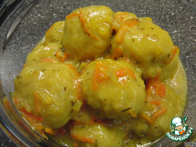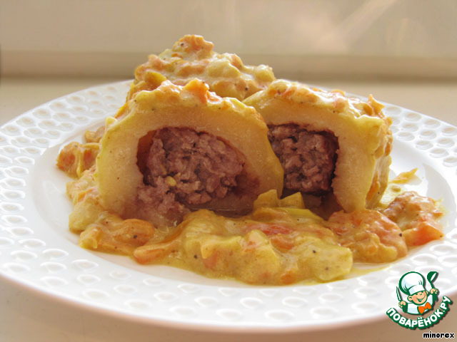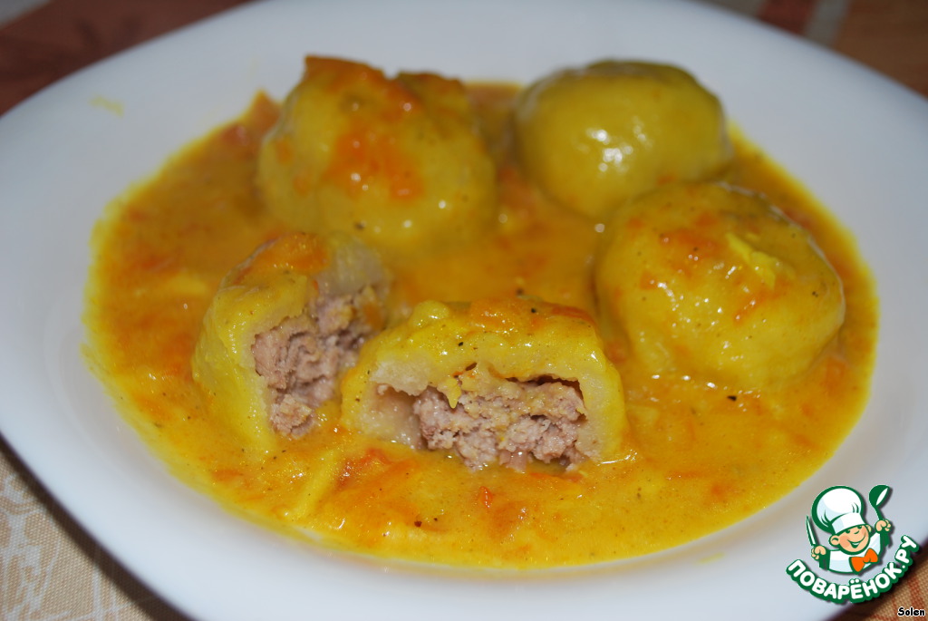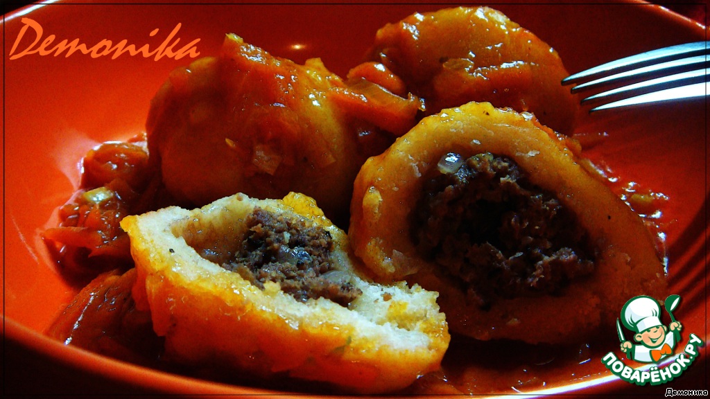 Рецепт «Кубэ манные с мясной начинкой в соусе»:
