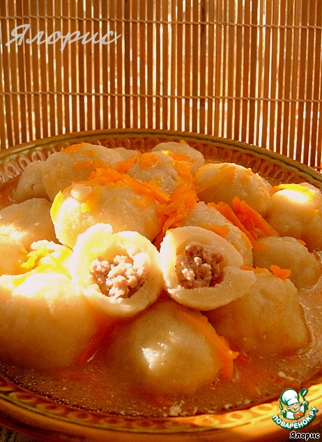 На приготовление этого необычного для моей семьи блюда сподвигли восхитительные отзывы кулинаров одного из кулинарных форумов. Очень приятно было "возиться" с манкой-тестом. Получился вкусный, сытный ужин!!!