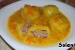 Рецепт: Кубэ манные с мясной начинкой в соусе