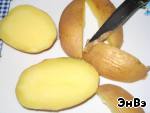Картофель отвариваем в мундире и режем каждый клубень на четыре части.
