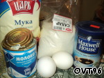 - Молоко сгущенное (1/2 бан. - для теста, 1/2 бан. - для крема) — 1 бан.