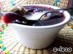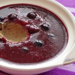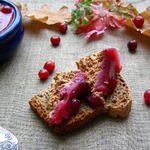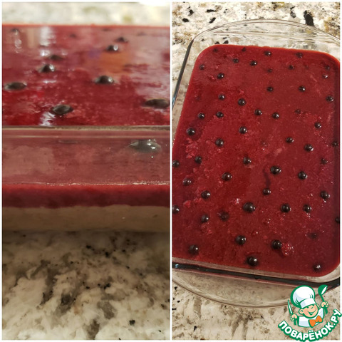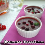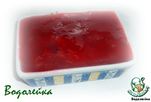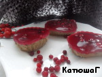 А пока можно заняться брусничным желе. Если Вам не удалось купить замороженную бруснику (что маловероятно), можно взять брусничный джем и немного проварить его с небольшим количеством воды. Можно также использовать гранатовый соус наршараб или любое другое варенье подходящего цвета (красная смородина, клюква). Главное условие - готовое желе должно быть с кислинкой.